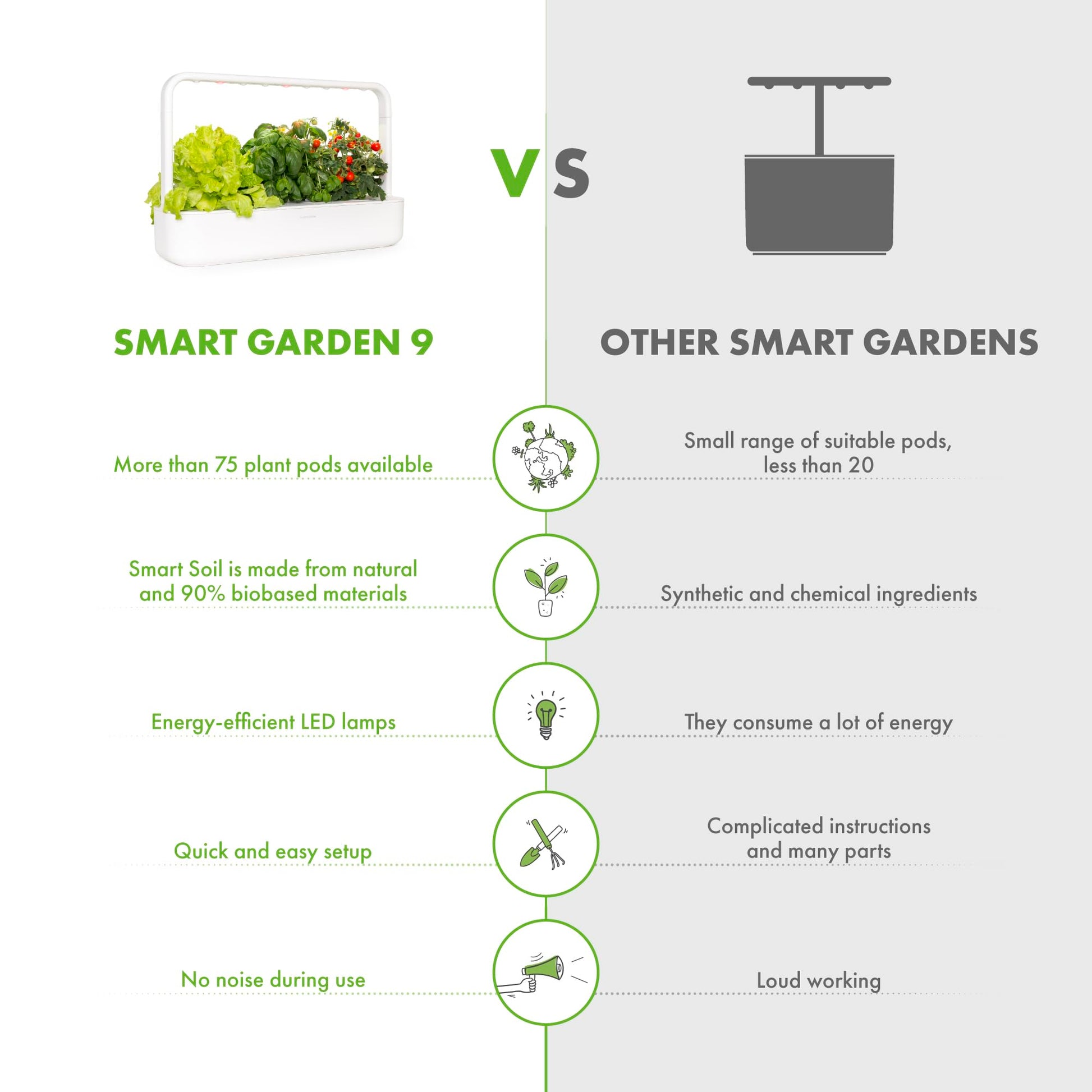 - Get growing right away - the kit comes with 3 mini tomato, 3 basil and 3 green lettuce pods.