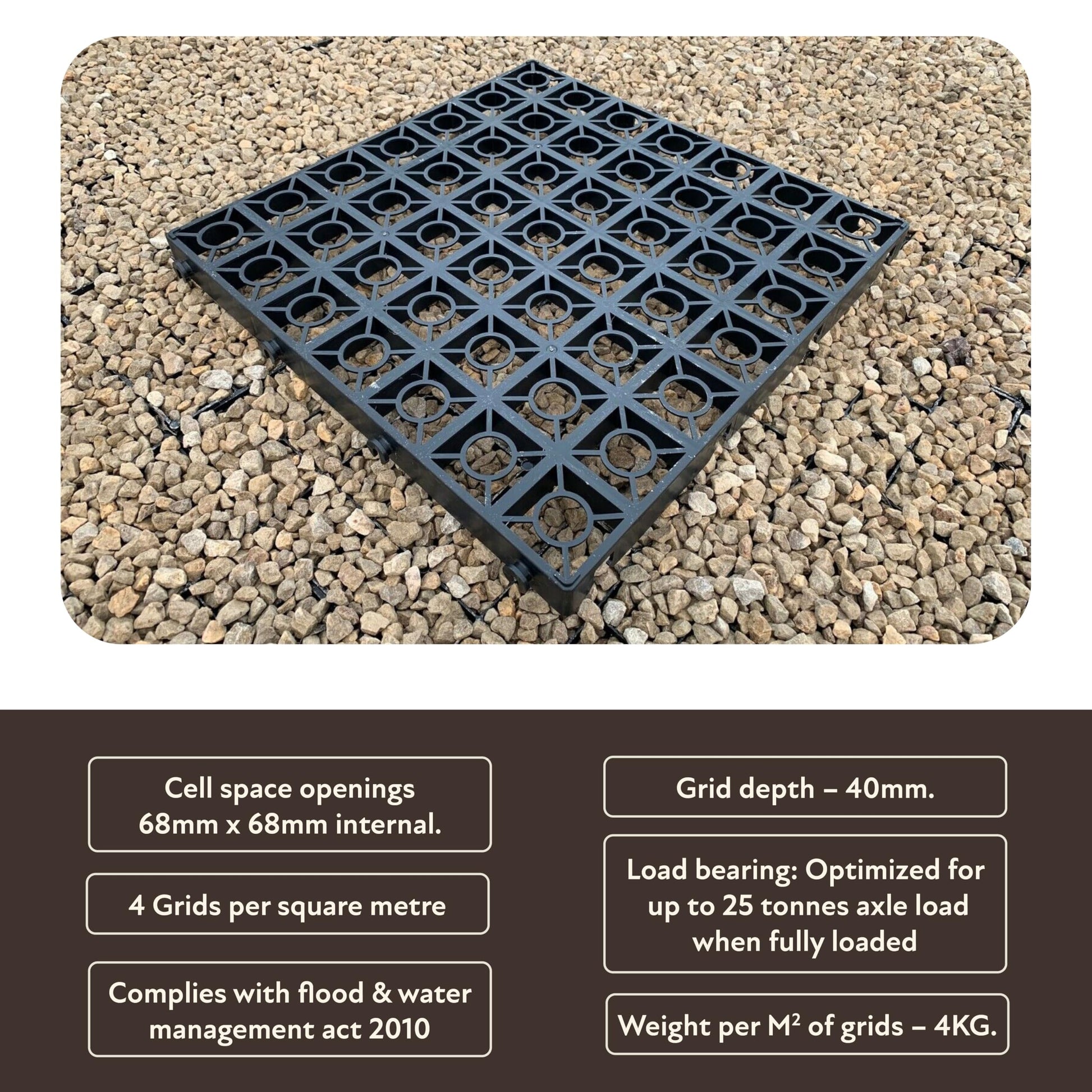 - CLEAN GRAVEL FINISH WITH 49 POCKETS: Each 500x500x40mm grid includes 49 individual 68mm square pockets for a neat, stable gravel surface that prevents material displacement.