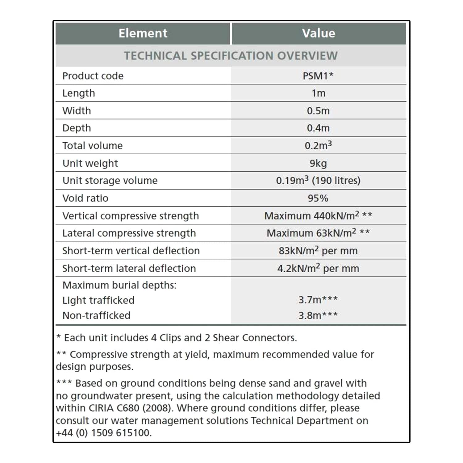Pack Contains: Polystorm PSM1A Crate, 100gsm Geotextile Membrane + Joining Tape To Suit