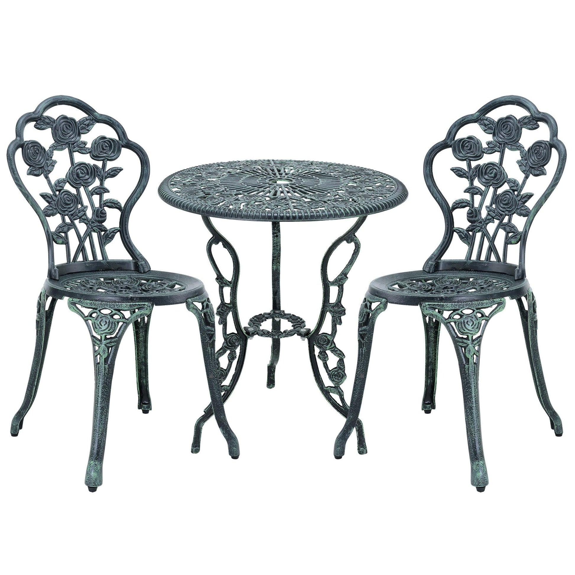 Rose Design Garden Bistro Set 1 Table 2 Chairs Cast Iron Green