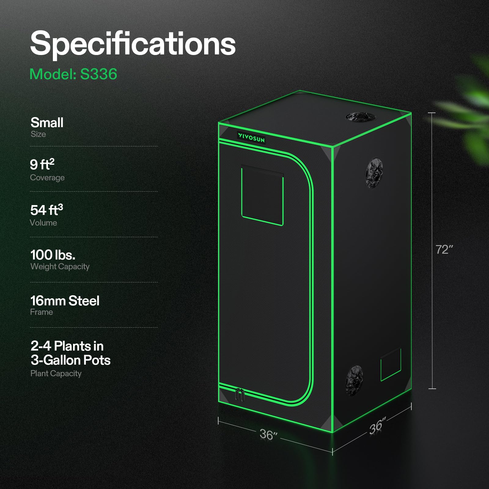 VIVOSUN Grow Tent 36'' x 36'' x 72'', Made of Highly Reflective Mylar, with Viewing Window and Base Tray for Hydroponics and Indoor Growing, S336, Suitable for VS2000/VS3000